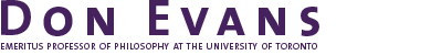 As well as being an Emeritus Professor of Philosophy, Don Evans (1927-2018) was a Minister with the United Church Of Canada, a Spiritual Counsellor and Psychotherapist, and earned several degrees including: B.A. (Toronto), B.D. (McGill), B.PHIL (Oxford), D.PHIL (Oxford), D.D. (Huntington)